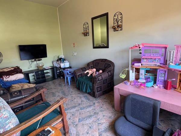 Outdoor living is a delight with a covered patio complete with a built-in braai, overlooking the neat, fenced garden. Additional features include a double garage, carport, and burglar bars for added security.