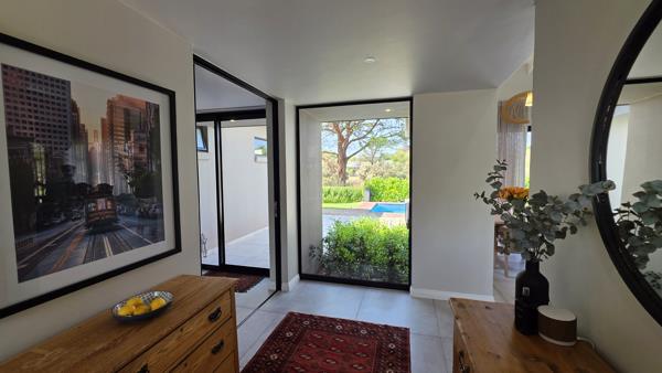 As you approach the home, a beautifully manicured garden greets you, with every detail cared for and maintained to perfection. The lush green lawns and neat landscaping are sustained by a borehole, a 10 000L water tank, pressure pump, water softener, and automated sprinklers ensuring a vibrant garden year-round.