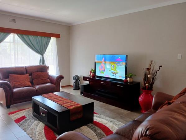 This charming home is newly available on the market. It is located in a good location in Kuruman and is neat and well-kept. There is three bedrooms with built in cupboards and two bathrooms. The living space has a fireplace and additional living space could also be used as dinning area should you want to. The kitchen has farmhouse style cupboards and a separate area for washing. The home is tiled through out the house and to top it up there is further also a tile roof.