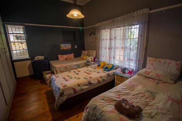 Stepping inside, you are welcomed by a warm and inviting interior featuring three spacious bedrooms, all fitted with built-in cupboards and elegant wooden floors, creating a timeless and homely atmosphere. The property includes two full bathrooms finished with quality tiles, ensuring both functionality and style.