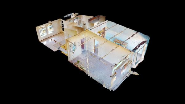 This offers a unique living experience with its blend of industrial and residential features. The single-story layout comprises two bedrooms, one bathroom, a hallway, and a kitchen.