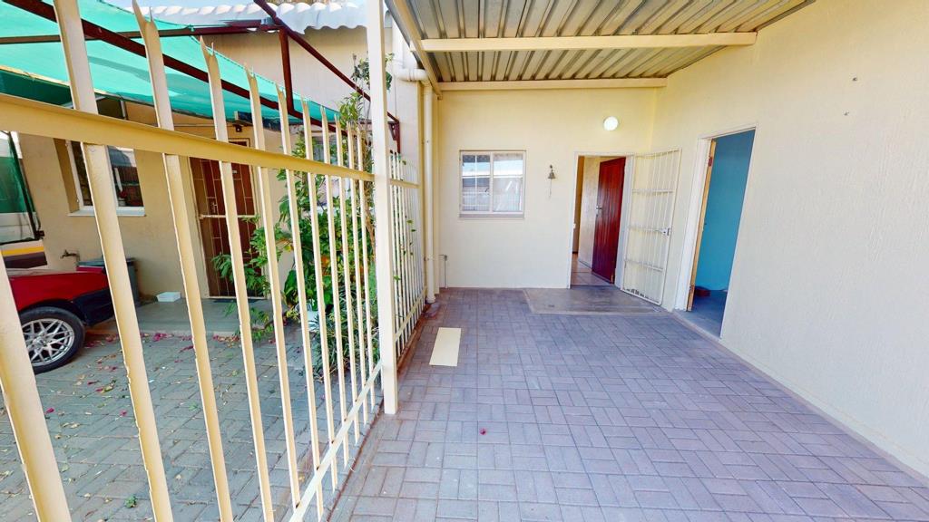 The home''s standout feature is its industrial-style ceiling, visible in several rooms. Corrugated metal sheets supported by wooden beams create an intriguing visual element and add height to the space. Tiled floors throughout provide durability and easy maintenance.
