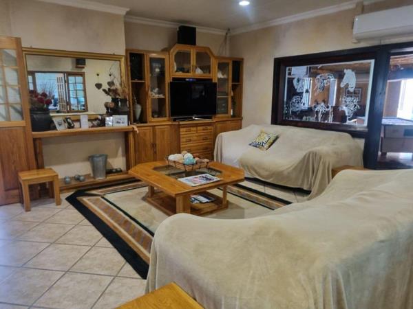 Living areas are generous and inviting, including a dining room, lounge, and a spacious TV/living area fitted with a built-in braai perfect for entertaining. A sleeper wood bar forms part of the living area and can be negotiated separately with the owner.