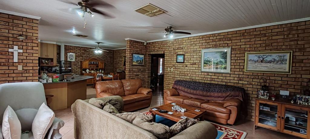 Moving further in, the home opens up to a generous living area, featuring a built-in braai and sliding doors that seamlessly connect the indoor and outdoor spaces.