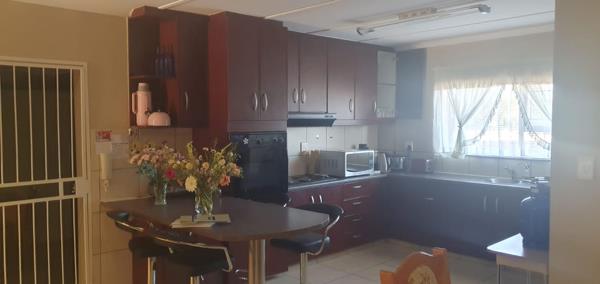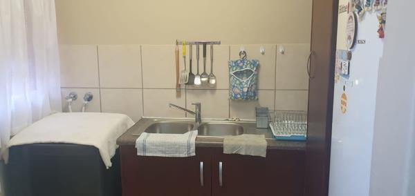 This unique 3-bedroom townhouse is located in a secure complex, with a spacious open-plan living area that flows through to the kitchen. The kitchen is equipped with ample built-in cupboards and features a separate scullery, the bedrooms are tiled and have built-in cupboards. The main bedroom has an en-suite bathroom with a basin toilet and shower, the extra bathroom is complete with a bath, shower, toilet and basin.