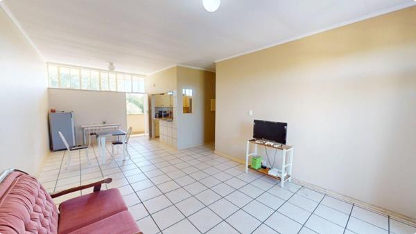 This apartment, located in the CBD of Upington, offers a practical single-floor layout with several versatile rooms. The interior is characterized by its bright and airy ambiance, enhanced by large windows that allow ample natural light to flood the space. Tiled flooring throughout provides a clean, low-maintenance surface.