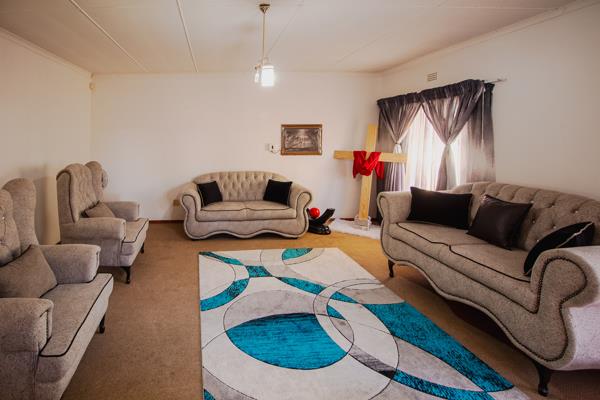Inside, youll find 4 carpeted bedrooms with built-in cupboards, including a main bedroom with en-suite for privacy and convenience. The home also features 2 bathrooms plus an outside toilet, a modern kitchen with eye-level oven and 4-plate hob, and a study, dining room, and lounge that opens onto a sunny patioideal for entertaining or relaxing with the family.