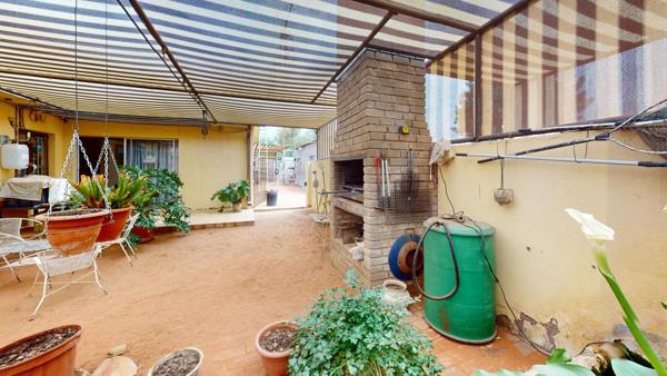 Step outside to discover an enchanting outdoor area, complete with a built-in barbecue - ideal for al fresco dining and creating lasting memories with loved ones. Potted plants add a touch of greenery, hinting at the potential for a lush garden oasis.