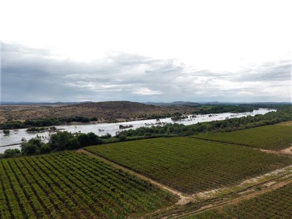 This property encompasses a total of 12 erven, consisting of 6 agricultural and 6 residential plots. Out of the residential plots, five are vacant, while one features a solidly built house, a storage shed, and drying facilities. The agricultural parcels span 36.1842 hectares, with a water allocation of 34.5 hectares. Water is sourced from the Boegoeberg Irrigation System, offering a supply of 15,000 cubic meters per hectare per year. Presently, all land is utilized for vineyards, with a small section dedicated to young pecan nuts growing among the vines.