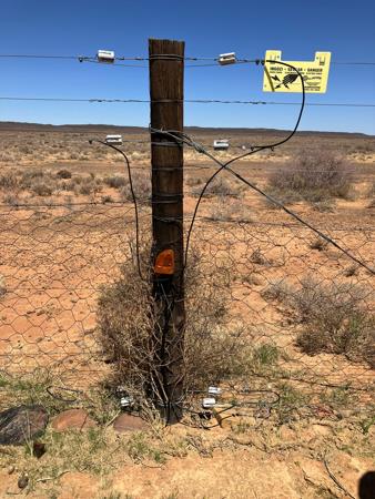 Totaal omhein met 1.6m jakkalsproef draad, wat d m v n sonkragstelsel geelektrifiseer is.