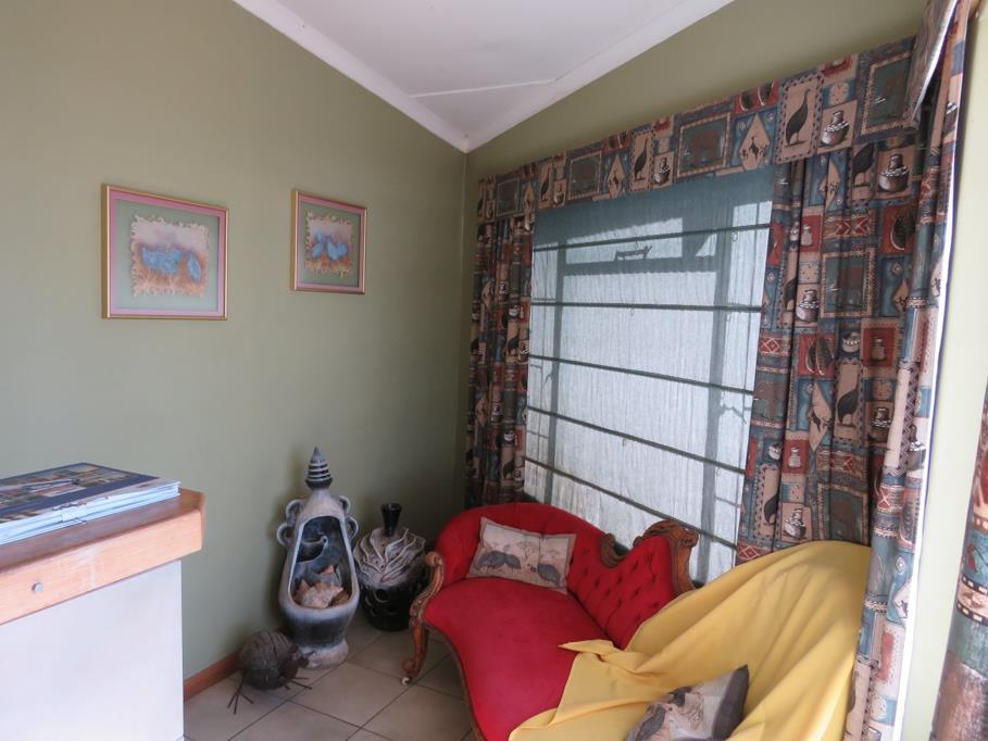 This is a two-in-one money making proposition. This Guesthouse surrounded by Karoo Koppies and a beautiful garden, offers 5 luxury-size, restful, away-from-street bedrooms with en-suite bathrooms. Each room has an outside door for your convenience to unpack. There is a small kitchen if your guest needs more. Living/dining room that will accommodate all guests. There is a comfortable house, adjacent to the guesthouse for the owner, with a study, bedroom, bathroom and fireplace adds cozy note in the living Tv room. Entertainment size kitchen with built-in braai, separate laundry and pantry. For the guests, there is an outside built-in braai to use. Furniture included and negotiable. Equipped borehole, backup water tank and automated irrigation system, supply house and well maintained garden with sufficient water throughout the year.