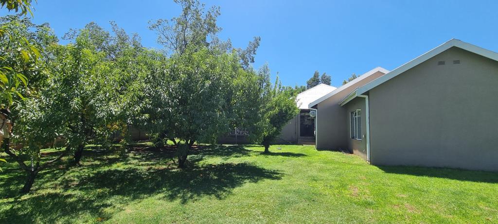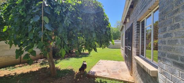 The kitchen consists of built-in cupboards with a separate scullery. The dining room leads onto the formal lounge, through sliding doors into a beautiful entertainment area with a built-in braai with sliding doors that leads out onto the garden.