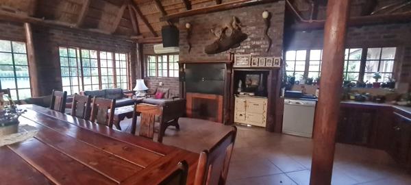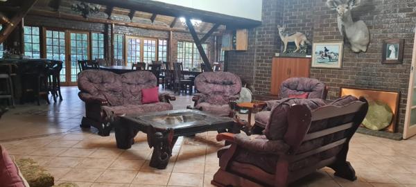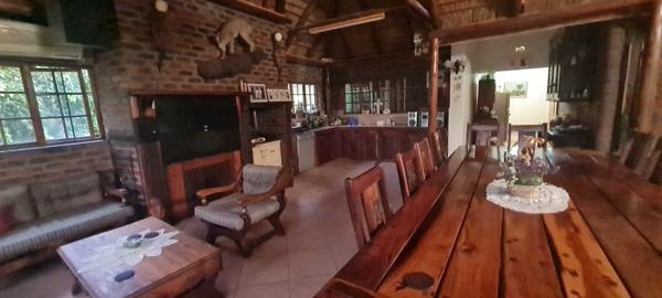 This home offers 5 Bedrooms with built-in cupboards, a open plan dining room, a bar and a built-in braai ( the sleeper wood table with sixteen chairs, a sideboard, Pool table and bar seats will be included in the sale.