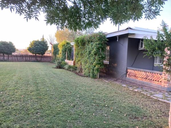 The well-maintained home consists of 3-bedrooms with built-in cupboards, a full family bathroom and separate guest toilet. A large kitchen leads into the dining room and lounge area, where sliding barn doors serve as a stylish way to separate the spaces when needed. A study room, especially with built-in cupboards and a wall unit is designed for book lovers an inviting and organized environment for reading, working, or relaxing. The stoep leads onto a tranquil garden with lush greenery where beautiful sunsets could be enjoyed! The homestead is burglar proof and fully fenced with new fencing.