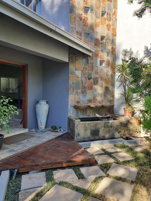 The heart of the house lies in its thoughtfully designed spaces, as seen with the double volume, open plan living room, dining room and kitchen, designed for relaxed family living. The separate study or private lounge is ideal for those seeking a tranquil workspace and is equipped with air conditioning. Under the stairs is a small, cleverly concealed wine cellar. The home also has a central alarm system.