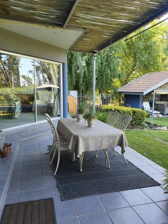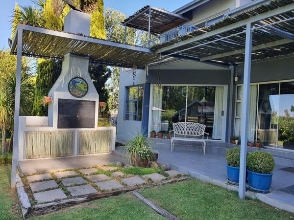 The living area leads onto a covered patio with braai, allowing space to enjoy indoor- outdoor living and to watch the vibrant birdlife.