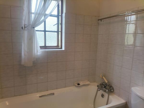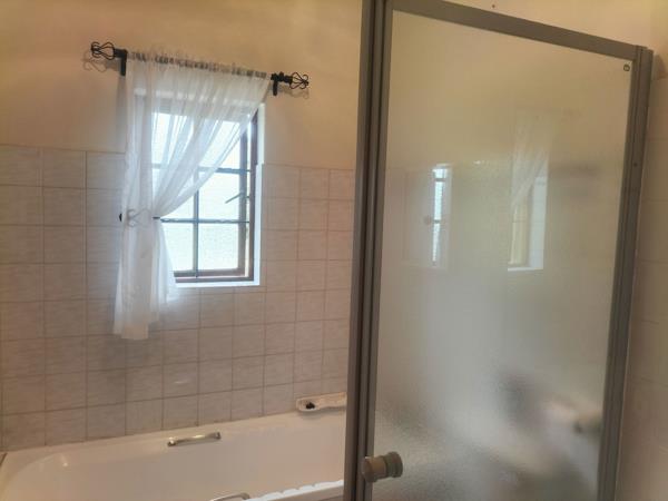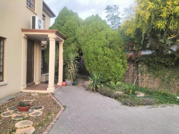 Kitchen & living room: The open-plan kitchen with ample cupboards flows effortlessly into the living area, complete with a cozy fireplace, and extends to a covered braai area overlooking a lush, manicured garden.