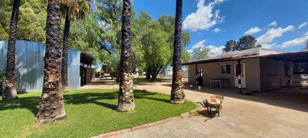 This unique property used to operate as the Loxton Lodge Guesthouse for many years. The main building was the residential property of the acclaimed South African author, Enna Murry. The property stretches over a full block of more than 5 000 m2 and has a very strong borehole (no Leiwater) with a beautiful Olive Orchard included. It consists of 3 Houses, one large barn, 5 garages with outbuildings (outside room with a small shower bathroom and lots more storage space) and a dining- /restaurant area attached to the main house with kitchen and separate toilets. The electrical wiring in all the houses has been redone.