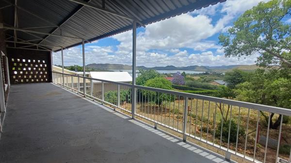 Double storey house on two plots for sale in Vanderkloof. This property, which encompasses two plots 1473 square metres in total, is situated in the quiet Uitsig neighbourhood of Vanderkloof towards the Rolfontein Nature Reserve. The main living area of the house is situated on the top floor and is tiled throughout. The spacious open plan loungedining and kitchen space is light and airy and opens through two sliding doors to a wide balcony which runs the full length of the top floor and offers great views of the dam across the rooftops of the lower lying properties - this is the perfect place to sip morning coffees or cool sundowners. The main bedroom offers lots of BIC''s and a full ensuite bathroom and opens onto the balcony through sliding doors. Off the central passage are a further two bedrooms and a second bathroom shower, basin, toilet. Down stairs is a self-contained flat with it''s own entrance, which is great for multi-generational living or for renting out to generate an income. There are also three large store rooms on the on the bottom floor. The second plot offers the advantage of ensuring no one can build in front of your view, and you can either develop an extended garden or build garages or carports. This property is well worth considering.