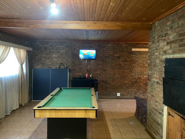 A spacious living area flows effortlessly onto an enclosed braai area, perfect for entertaining while being sheltered from the wind.