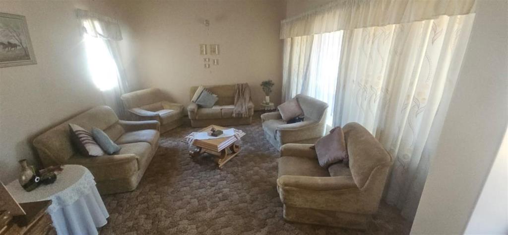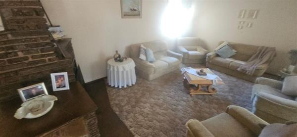 The open-plan lounge and dining area, complete with a cozy fireplace, provides a warm and welcoming space for entertaining and everyday living. The kitchen is equipped with durable steel cupboards, a stove, and a separate scullery for added practicality.