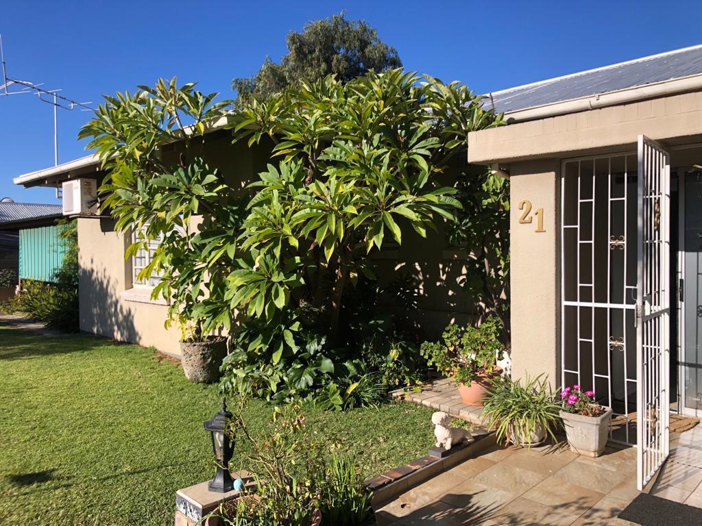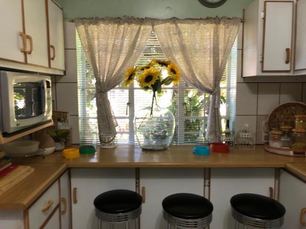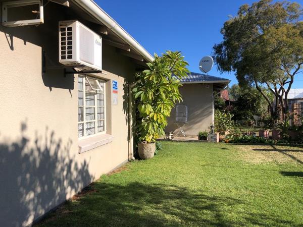 Immaculate Family home. Situated close to Diamond Pavilion Mall and Top High Schools and Junior Schools. Comprising of 3 large bedrooms with built in cupboards, and ceiling fans and air-con. 1 Full bathroom and separate guest toilet. Lounge with wood fireplace. Dining room area. Kitchen with plenty of built in cupboards and separate scullery. Oven and hob. Manageable garden with manual irrigation. Single garage and triple under cover carport. Outside room with toilet and shower. Secure with alarm system, electric fencing and remote gate.