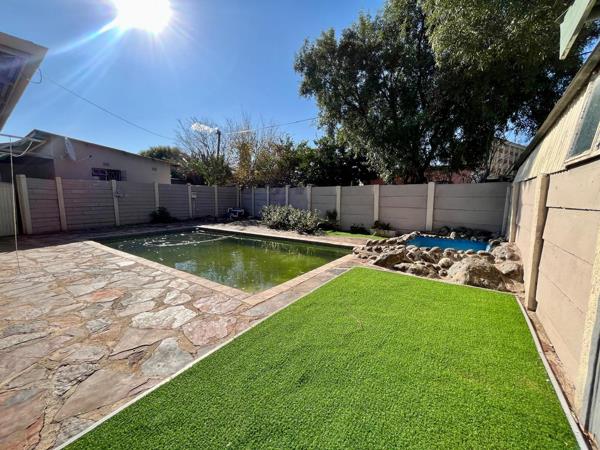 This famly home offers 3 spacious bedrooms, 1 batroom with a corner bath, separate toilet. Lounge with a fireplace. Dining room. Open plan kitchen. Swimming pool. Carport for 4 vehicles. A modern 1 bedroom flat with own entrance and a carport. An outside Wendy house with its own bathroom.