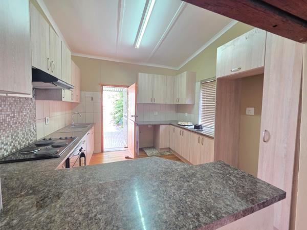 A tandem carport provides ample parking, while the low-maintenance paved garden boasts a built-in braai ideal for entertaining. The home is equipped with a watercooler and Jo-Jo tank, ensuring year-round comfort and water storage. For peace of mind, the property is fully fenced and fitted with burglar bars and an alarm system.