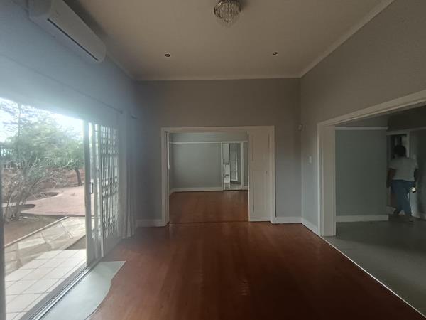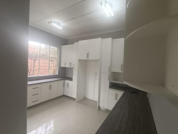 Entering the home, you will find an entrance hall and to the left side, you have a very spacious lounge and dining room. The open-plan kitchen with white cupboards blends beautifully with the wooden floors. Separate room that can be utilized as a bedroom or a study.