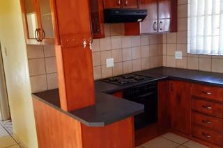 This townhouse consist of 2 bedrooms with built in cupboards, 1 full bathroom. Open plan family rro. Dining room. Kitchen with built in cupboards, and under counter oven and hob. The complex is securely walled, ensuring peace of mind, and each window is equipped with burglar bars for added safety.