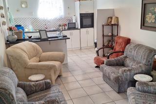 This neat home offers 3 bedrooms with built in cupboards, 2 bathrooms 1 en suite. Open plan kitchen with gas hob and scullery. Lounge and dining room area. Outside there is a closed PatioBraai Room with Built in Braai.