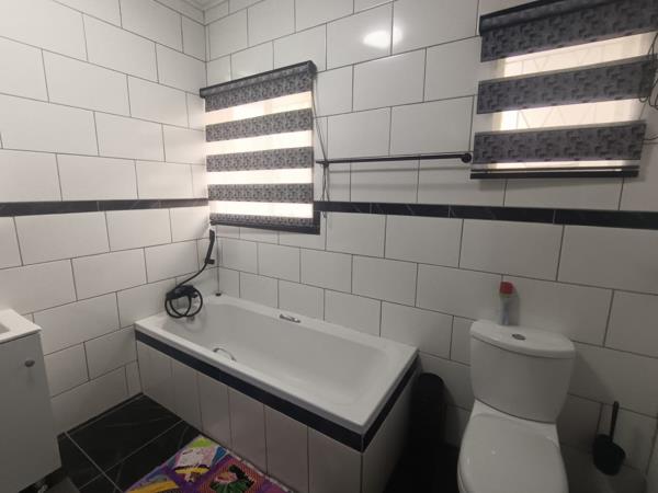 Laundry room, Swimming pool, nice sitting area next to the Swimming pool which is neatly fenced and fitted with a cover. Double entrance and carports for all your vehicles, and to your surprise you will find 2 flats, and no issues with Loadshedding or water shut downs.