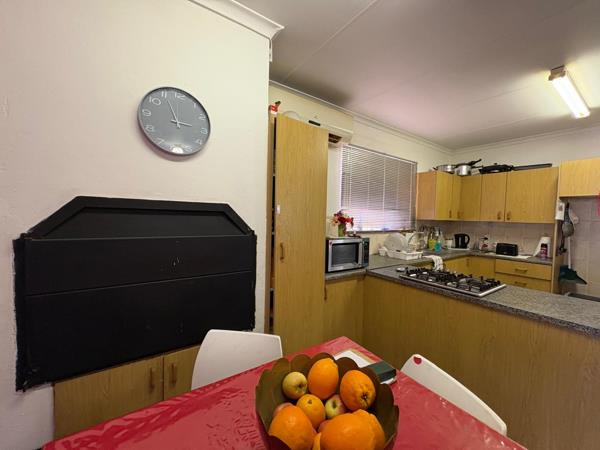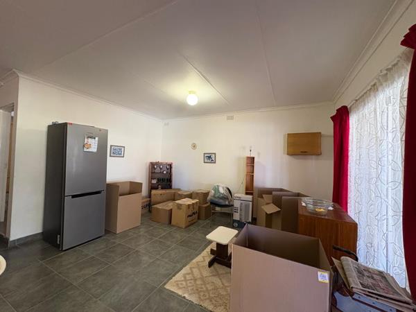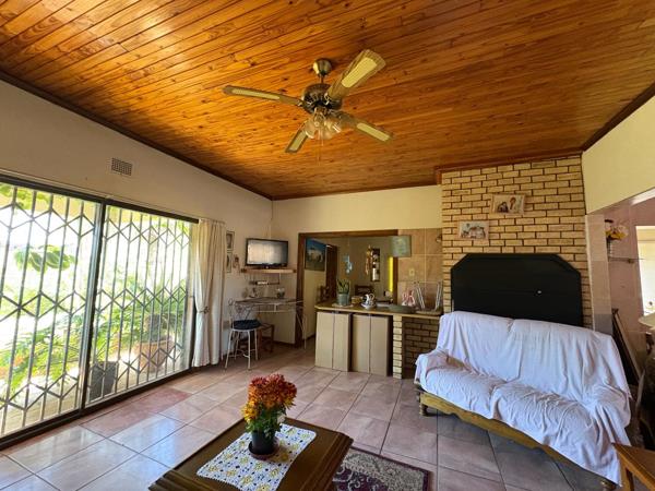 The lounge features a cozy indoor braai area and trellis door security Large Living room