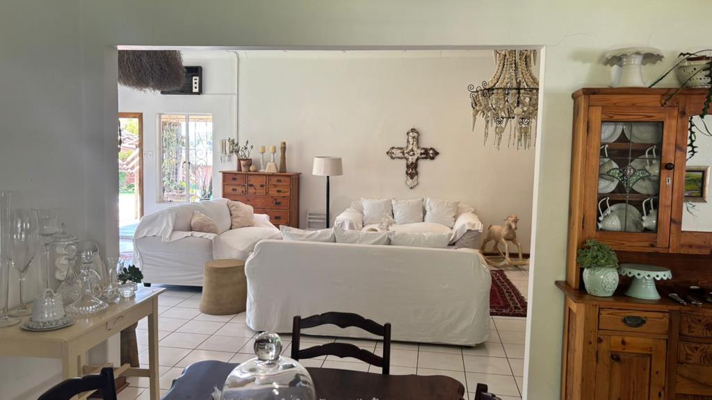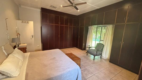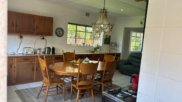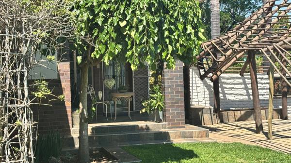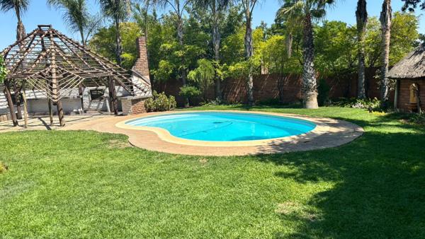 This home offers 4 bedrooms with built in cupboards, 3 bathrooms 1 en suite. Open plan kitchen with gas stove and scullery, lounge and dining room. Study. Watercooler, Jojo Tank and 3 large store rooms. Sparkling pool and built in braai area. Double garage and double carport for 6 vehicles. Property is fully walled, equipped with burglar bars, and features an alarm system.
