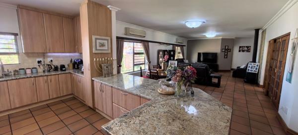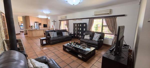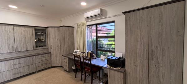 This lovely family home offers 4 bedrooms,3 bathrooms (main en-suite), open plan living and dining room with gas fireplace in living room, kitchen with gas hob, eye-level oven and separate scullery, large study or home office with bic and built in desk and an entertainment room with built in braai. The entertainment room opens up unto the garden and swimming pool (heated) area.