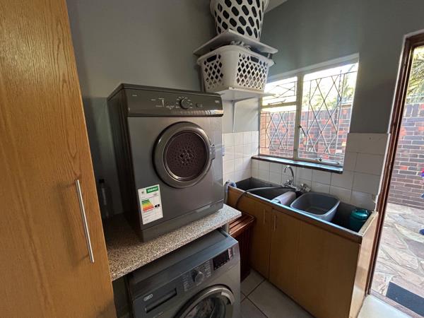 The modern kitchen is fitted with granite countertops and includes a separate scullery for added convenience. Set on a generous 1230sqm erf, the property also offers three garages, dual street access, a storeroom, and domestic quarters. The third garage has its own entrance and can easily be converted into a private flatlet.