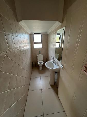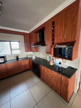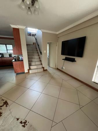 Upstairs, three comfortable bedrooms await, including a main bedroom with an en-suite bathroom for added privacy. The additional full bathroom features both a corner bathtub and a separate glass-enclosed shower, catering to all preferences, while a convenient guest toilet is located downstairs. The property also includes a dedicated outside braai area, perfect for entertaining.