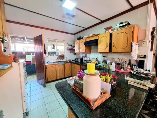 The standout feature of this property is the exceptional entertainment area, which serves as a versatile family room. This space is equipped with a built-in braai, ample built-in cupboards for storage, a convenient separate toilet, and a practical kitchenette - perfect for hosting gatherings.