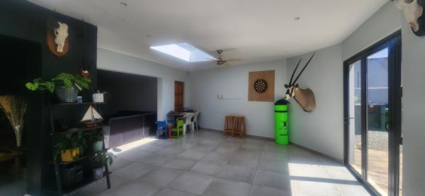 For the ultimate entertainment experience, the house features a dedicated entertainment area with a built-in indoor braai, complemented by sunroof openings that infuse the space with natural light. This area seamlessly extends to the outdoor braai zone and the inviting swimming pool, which also features stack doors for a seamless transition between indoor and outdoor living. Everything has been meticulously designed and is impeccably maintained.