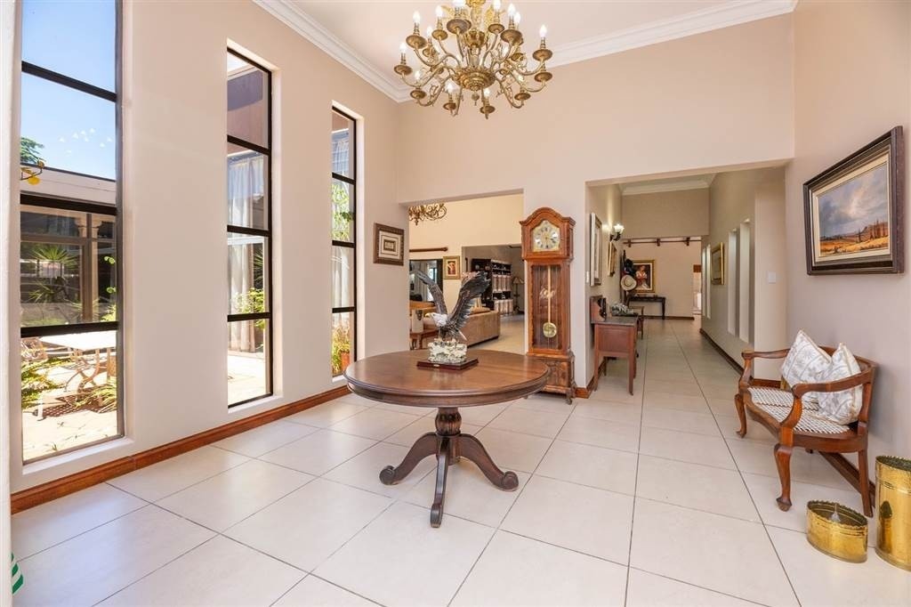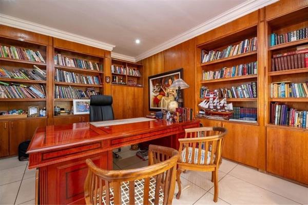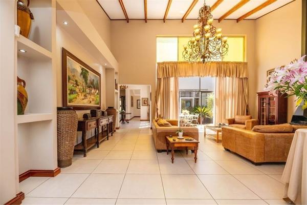 Additional features include an enclosed entertainment area with Jetmaster braai and stacking doors opening onto a grassed courtyard, pool, and elegant gazebo/dining patio. Two self-contained flatlets, each with kitchenette and bathroom. A borehole with two 5,000L JoJo tanks integrated into the homes water and garden irrigation system. A four-car garage with a lengthy driveway providing ample additional parking.