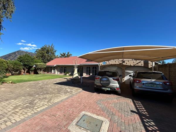 Outside features a sparkling swimming pool, a lapa with built-in braai, and a beautifully maintained garden with a JoJo tank and solar panels with inverter for energy efficiency. Also includes staff accommodation, a double garage, and a water cooler system for comfort in the Kimberley heat.