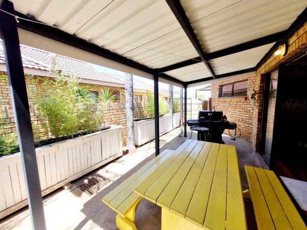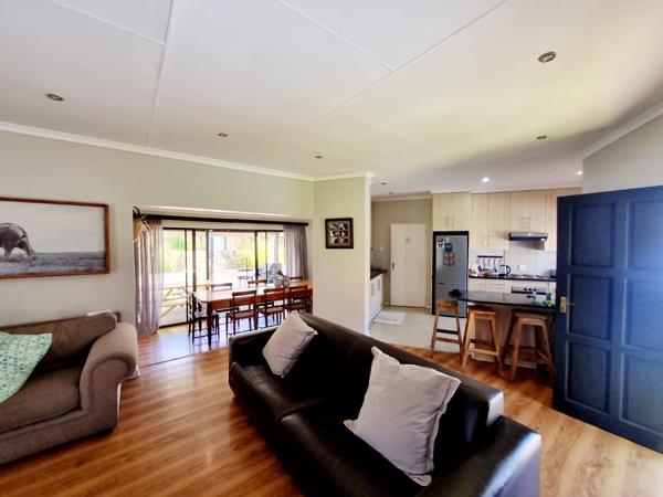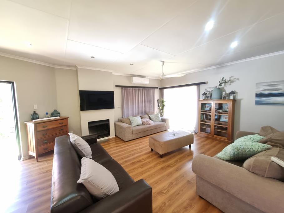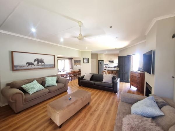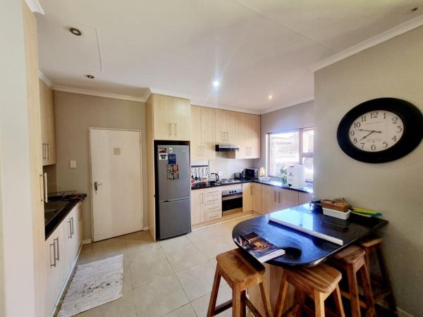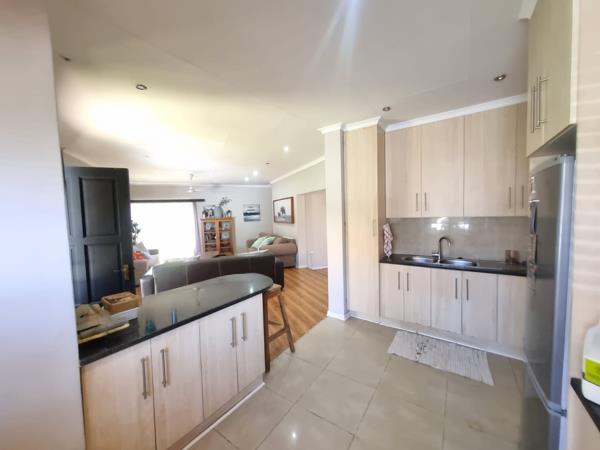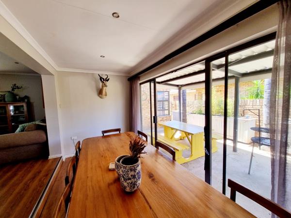 The home offers three bedrooms and two bathrooms, including a main en-suite. Two of the bedrooms are fitted with air-conditioning, and the bedrooms are thoughtfully positioned along a small passage, set away from the living areas and secured with a safety gate.