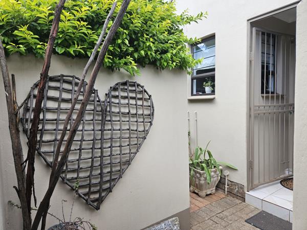 It offers 2 bedrooms and 2 bathrooms, an open plan kitchen, dining room and family room with two patios and a built in braai in a cozy walled garden. Separate laundry room and 1 garage and 1 covered parking with outside toilet.