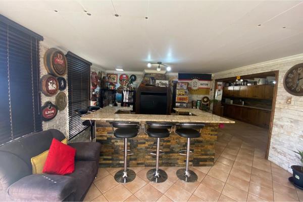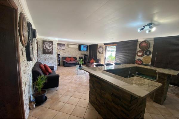 The home boasts an entertainment room featuring a built-in braai and bar, creating an ideal space for hosting gatherings. Outside, youll find a swimming pool to enjoy on warm days, surrounded by a well-maintained garden equipped with a Jo-Jo tank for water conservation.