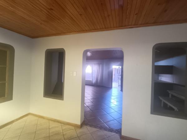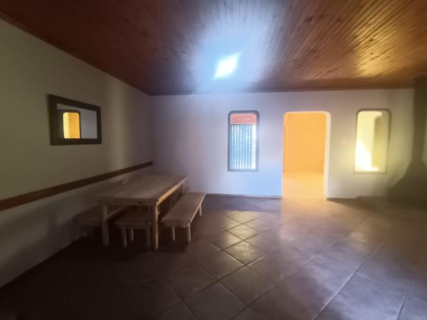 Lovely, and secure with a very spacious open-plan lounge, dining room, and kitchen, which flows nicely together. Tiled floors and beautiful notypine ceilings. The kitchen is equipped with lots of solid wooden cabinets. A huge separate laundry area with space for extra tables and chairs, washing machines, and ridges that open up to a courtyard with your washing lines. The double garages open by remote and enter directly into your laundry extended kitchen area. Also to your living area is an extra space for another sitting area that opens to the garden with a braai.