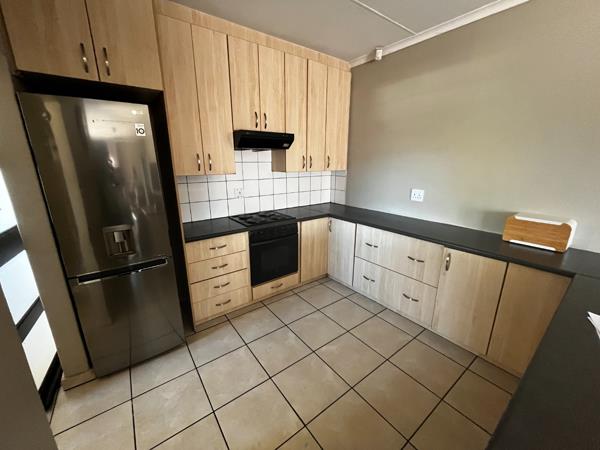 Outside, the fully paved yard means less fuss and more fun. You''ve got a single garage and an additional parking space. The property is well-secured with burglar bars and security gates, giving you peace of mind. Pets are welcome too!
