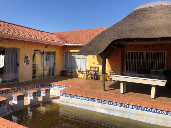 This Property is fenced and secured with Electric Fencing, burglar bars, alarm system and CCTV Camera