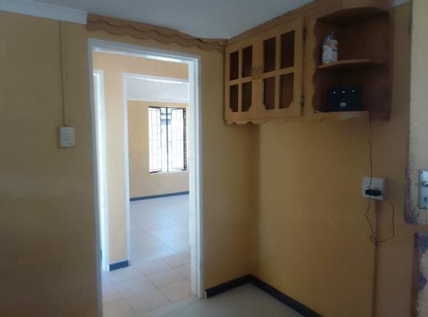 This open plan kitchen, (Built-in cupboards) lounge, nicely tiled, both bedrooms are tiled with build in cupboards.