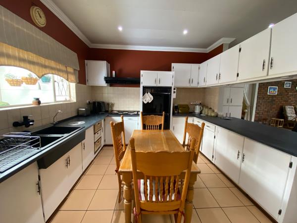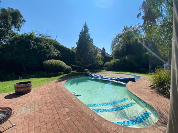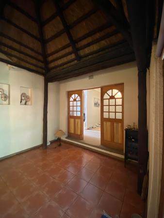 A charming thatched-roof entrance hall welcomes you into the home, creating a warm first impression. The spacious living areas flow effortlessly to the outdoor entertainment space, where a thatched braai and entertainment area overlooks the swimming pool and large, well-established garden perfect for family gatherings and relaxed outdoor living.