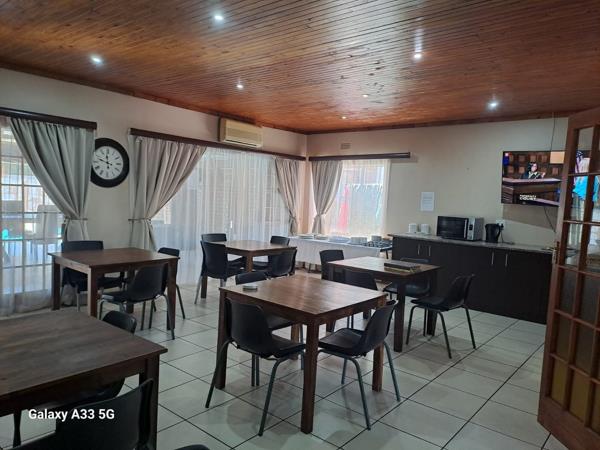 This property is an ideal investment opportunity , offering a spacious guest house set up with 21 well appointed bedrooms each with its own en suite bathroom for privacy and comfort. The welcoming reception area is perfect for greeting guests, leading into a cozy lounge and spacious dining room area. The fully equiped kitchen , complete with a gas stove , is designed to cater to a high volume of guests efficiency.